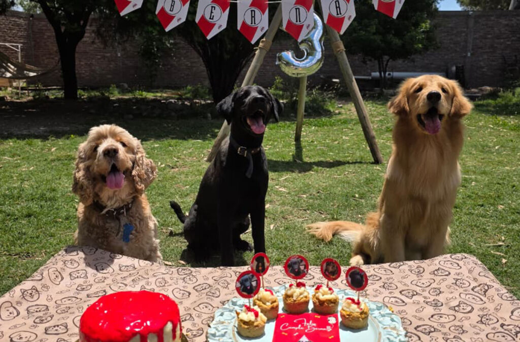 Hay cumpleaños compartidos con otros perros, kits con banderines personalizados, muffins con fotos, bolsitas para los “amiguitos” y cotillón adaptado a cada festejo.