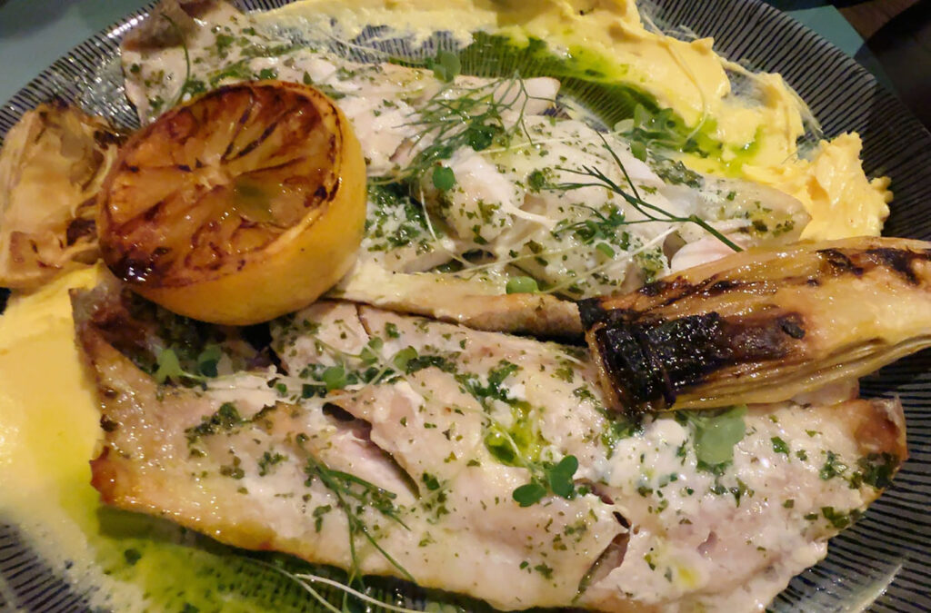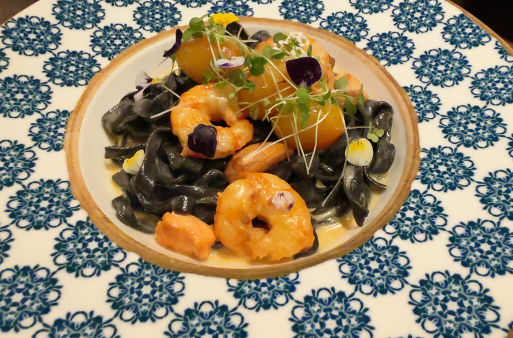 En los principales, los tagliatelle con tinta de calamar, langostinos y pescado logran ese punto de balance que no se explica, pero se siente. La chernia a la parrilla, con salsa bearnesa e hinojo grillado, muestra cómo el mar puede convivir con el fuego sin perder frescura. Se completa con una ensalada de verdes, limoneta, queso rallado y avellanas tostadas: simple y bien pensada.