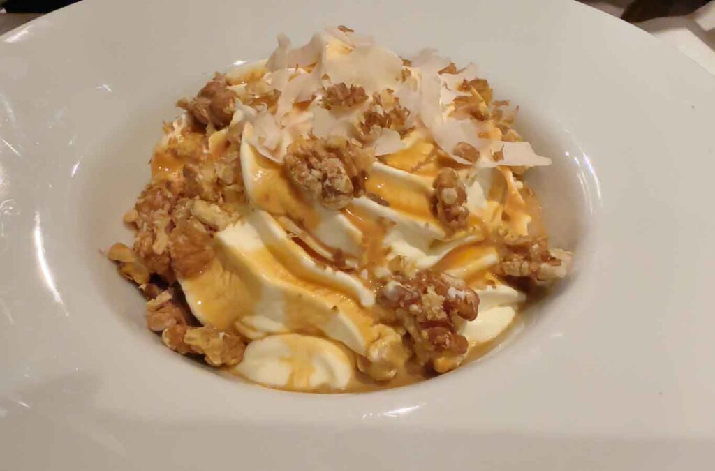 La carta de postres sostiene el mismo espíritu: clásica y bien lograda. La mousse de chocolate con quinoa inflada cierra con equilibrio; la torta chajá con crema, dulce de leche y duraznos al natural, apela a la memoria, recuerda a las tortas de cumpleaños cuando éramos chicos.. Después llega el café, uno siente que el tiempo puede esperar un poco más. Y eso, en gastronomía, ya es mucho.